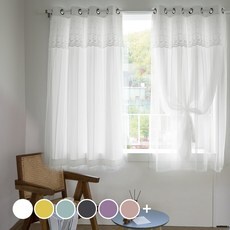 6. 아일렛형 긴창 솔리드 암막커튼 2p + 소프트 쉬폰커튼 2p + 끈 2p 세트